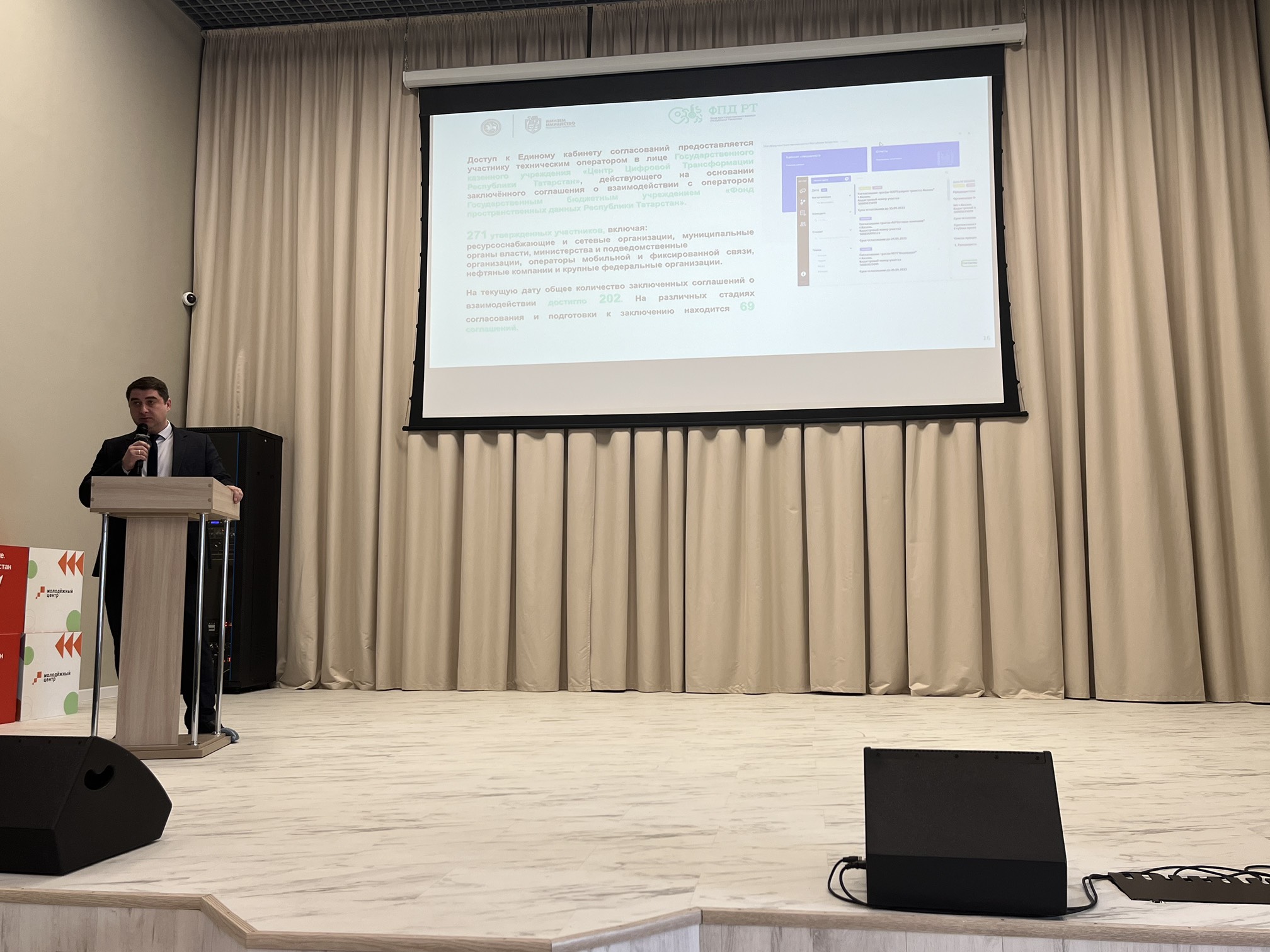 Первый заместитель директора Фонда пространственных данных РТ Сергей Бахматов выступил с докладом о заключении соглашений в рамках ЕКС для дальнейшей интеграции участников, разъяснив особенности работы системы представителям органов местного самоуправления и ресурсоснабжающих организаций.